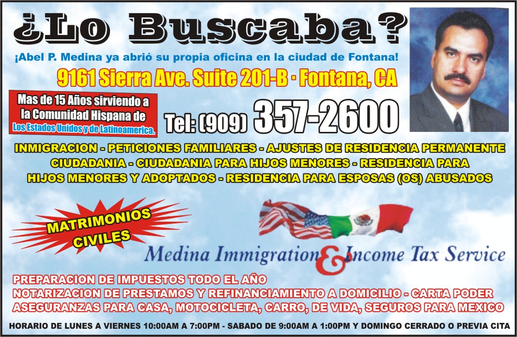 Medina Immigration Income Tax Service 9161 Sierra Ave Fontana Ca 92335 Usa